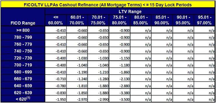• Update ‘Cash-Out Refinance’ < = 30 Day Lock Periods Grid to < = 15 Day Lock Periods